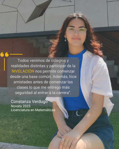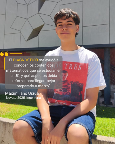 ¡Atención Novatas y Novatos 2026! Fechas y detalles del Test de Diagnóstico Fechas y horarios Test de Razonamiento Cuantitativo Fecha: Jueves 22 de enero 2026 Horario: 15:00 PM (duración 2 horas) Carreras: Actuación, Antropología-Arqueología, Arte, College en Artes y Humanidades, Derecho, Diseño, Enfermería, Filosofía, Historia, Letras (Mención Lingüística y Literatura Hispánica / Inglesa), Música, Pedagogías (Básica, Especial, Física, Inglés, Párvulo, Religión), Periodismo/Dirección Audiovisual/Publicidad, Psicología, Teología, Trabajo Social. Plataforma: El test de rinde en la página https://pimu-rc.mat.uc.cl/ Acceso: El USUARIO sera tu Rut (sin puntos y con guion) y la CLAVE los 4 primeros dígitos de tu RUT. ¡Recuerda que la prueba solo se abrirá en el horario indicado! Test de Introducción a la Matemática. Para este Test hay 2 horarios y dependerá de tu carrera Fecha: Viernes 23 de enero 2026 Horario y carreras: 09:00 AM (duración 2 horas): Administración Pública, Agronomía e Ingeniería Forestal, Arquitectura, Bachillerato Inicial, Biología, Biología Marina, Bioquímica, Ciencia Política, College (Ciencias Naturales, Matemáticas, Ciencias Sociales). Plataforma: El test de rinde en la página https://pimu-im.mat.uc.cl/ Acceso: El USUARIO sera tu Rut (sin puntos y con guion) y la CLAVE los 4 primeros dígitos de tu RUT. ¡Recuerda que la prueba solo se abrirá en el horario indicado! 15:00 PM (duración 2 horas): Construcción Civil, Estadística, Fonoaudiología, Geografía, Ingeniería en Recursos Naturales, Kinesiología, Licenciatura en Ingeniería en Ciencias de Datos, Licenciatura en Ingeniería en Ciencias de la Computación, Medicina, Medicina Veterinaria, Nutrición y Dietética, Odontología, Pedagogías (Media en Ciencias Naturales y Biología, Química), Química, Química y Farmacia, Sociología, Terapia Ocupacional. Plataforma: El test de rinde en la página https://pimu-im-s2.mat.uc.cl/ Acceso: El USUARIO sera tu Rut (sin puntos y con guion) y la CLAVE los 4 primeros dígitos de tu RUT. ¡Recuerda que la prueba solo se abrirá en el horario indicado! Test de Precálculo Fecha: Viernes 23 de enero 2026 Horario: 12:00 del día (duración 2 horas) Carreras: Astronomía, Física, Ingeniería Civil, Ingeniería Comercial, Pedagogía en Educación Media en Física. Plataforma: El test de rinde en la página https://pimu-pc.mat.uc.cl/ Acceso: El USUARIO sera tu Rut (sin puntos y con guion) y la CLAVE los 4 primeros dígitos de tu RUT. ¡Recuerda que la prueba solo se abrirá en el horario indicado! Test de Competencias Matemáticas Fecha: Viernes 23 de enero 2026 Horario: 09:00 AM (duración 2 horas) Carreras: Matemáticas y Pedagogía Media en Matemáticas. Plataforma: El test de rinde en la página https://pimu-cm.mat.uc.cl/ ¿Y después del test? Dependiendo de tu resultado, te ofreceremos alternativas de nivelación para reforzar tus competencias. Conoce las fechas de nivelación aquí: Link a las fechas de nivelación